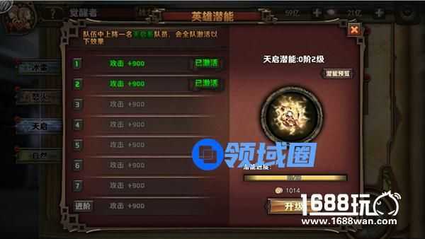 四个不同的系别有各自的潜能点数,玩家每获得一个新的英雄或者提升英雄的觉醒等级,都会获得一定量的潜能点数,而潜能点数可以用于升级觉醒潜能,提高队伍全体的战斗力。