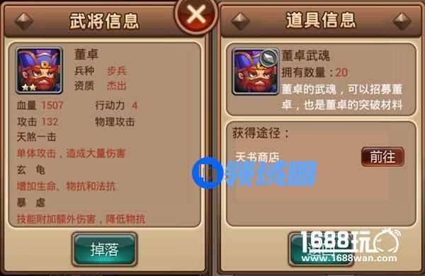 目前资质杰出的步兵有董卓、夏侯惇、张飞、孙权、孙尚香。董卓、前期建议玩家使用董卓,这是游戏中最稳定和易于获得的杰出步兵之一,且为二星,无论是大R或者平民都不可错过的选项。在天书商店有碎片出售,很快就能凑齐武魂石合成武将。中期的话就在夏侯惇、张飞中间选择一二。孙权与孙尚香的武魂石可在竞技场商店获得,除了培养孙吴阵营外,一般不在培养计划中。