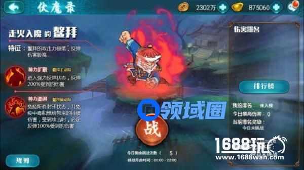 游戏中将世界BOSS设置成了诸如鳌拜这样的大反派,玩家需要在伏魔录中挑战他们,通过自身对其造成的伤害来计算排名,最终获得奖励。