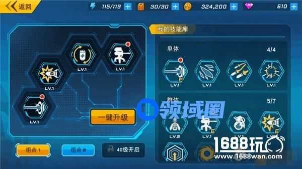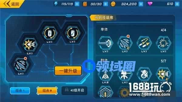 (1-4)这里可以采用一个单体,一个回复,2个群体。采用这种组合可以轻松完美三S过关,小怪可以用范围技能直接过了,打到最后出现了boss(因为不是最后一个关卡的大boss所以伤害和血量不会很高)可以用这些伤害技能配合普通攻击磨死,血量低了就直接使用回复性技能然后用接下来说的boss打法即可轻松过关。