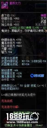 注:该系列区域神器无任何亮点,所有职业武器属性都为所有职业1-50全部技能LV+1(特性技能除外)