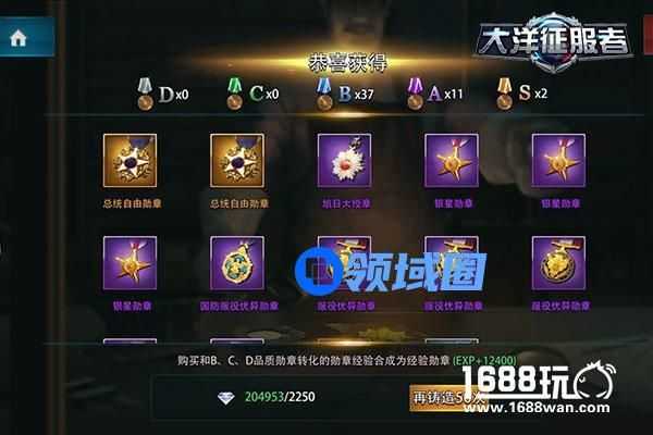 勋章的来源需要铸造获得,在《大洋征服者》的勋章铸造界面中,总共有两种方式为玩家们获取勋章。分别为学徒铸造(消耗金币)与大师铸造(消耗钻石),前者最高可以获取紫色A级勋章,而后者最高则可以获取橙色S级勋章。