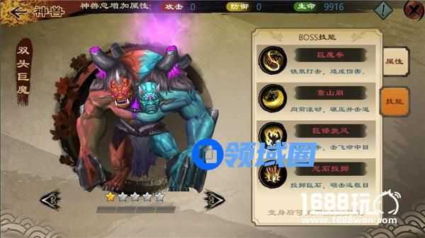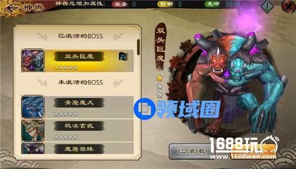 选中未激活的神兽,点击右下的“查看”按钮,可查看此BOSS的详细信息。