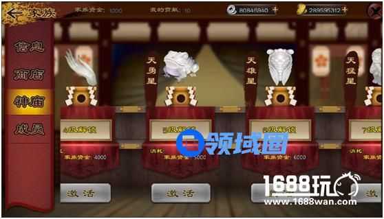 家族神庙则是一个提升玩家归属感的系统,玩家需要多多参加活动,为家族赚取贡献,族长才可以开启神庙雕像,为全族成员加持属性光环,这是一个需要全家族动员的玩法。