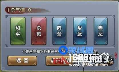 帮派模式:可攻击除和平外非己方帮派玩家及杀戮模式玩家。