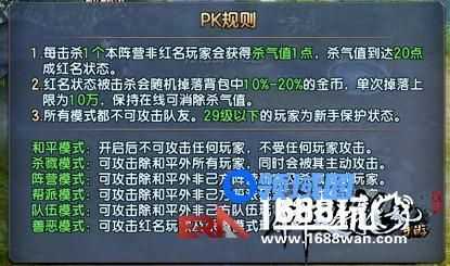 善恶模式:可攻击红名玩家及杀戮模式玩家。