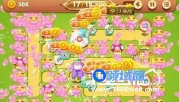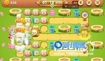 2.首先小编在我们现在侧边放2个满级的章鱼炮塔,快速消掉中的障碍放置蘑菇炮塔减速。