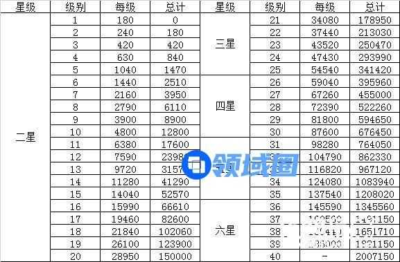 每级升级所需的经验是三次方递增的,总经验所需则为四次方级。因此前期升级需要的经验不是很多,但到后期增长却是相当恐怖的。