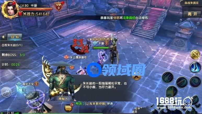 在清理掉沿途的小喽啰之后,就能看到第一个Boss朱长龄啦,神秘人出现告诫各位虽然朱长龄的武功虽然不咋地,但是也要稍微注意一下,随意躲躲技能什么的~朱长龄有个封技的技能,这期间得硬抗了。其他没什么技巧站撸即可~