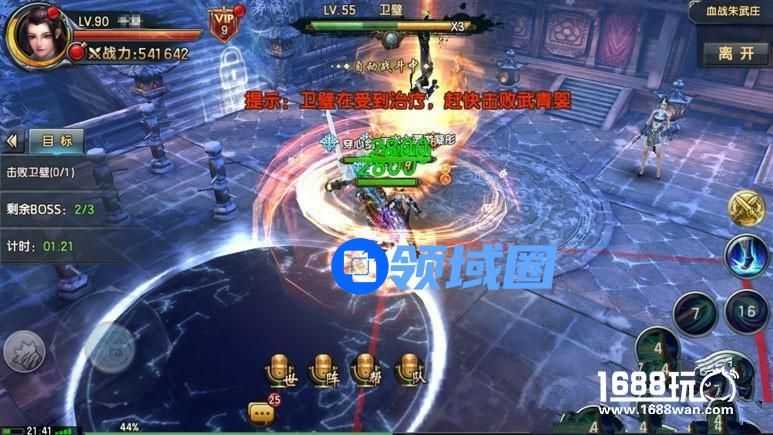当卫璧血条剩至三条时,武青婴会自动为卫璧回血,这个时候要兵分两路,派出几人将武青婴击杀,切断回血来源。否则卫壁血量回复量将高于大家输出量,到头来只能做无用功而已~