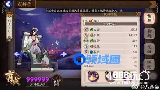 觉醒后面板:我们拿她和一目连相比。生命速度2S,基础生命高于一目连,是目前阴阳师基础血量最高的式神。攻击防御2C,防御略低,与一目连基本持平,暴击1B不说了。