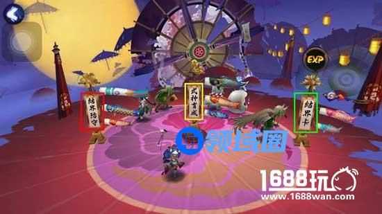在这里养狗粮,经验不会自动获得,需要点击“结界卡”上方的气泡人工收取,气泡内容根据使用的卡类型改变。当然光放了式神也是不够的,需要使用接下来说的这种卡。