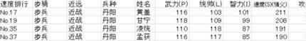 在60的将领中,黄盖和甘宁的速度都算中等,在进站中位列15和17位。超过周瑜和貂蝉以外的所有远程单位。而凌统和孟获的速度则接近垫底。
