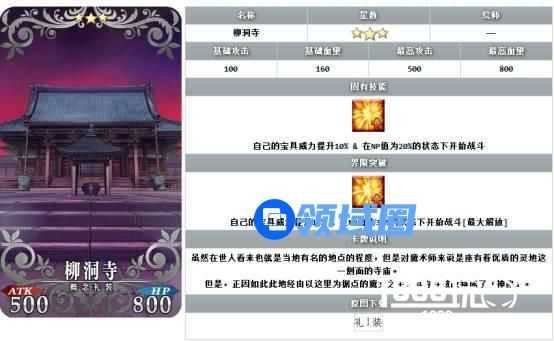 但是不管是从获得难度以及下位的程度而言,柳洞寺和龙脉一样,属于新人之友类型的三星礼装。对于新手初始十连没有碰到优秀的提升NP礼装的时候,柳洞寺是一个十分不错的选择。