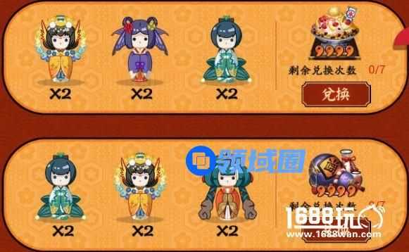 兑换方式:三种雏人形道具各2个可以换一张美食卡,每种卡限量7个