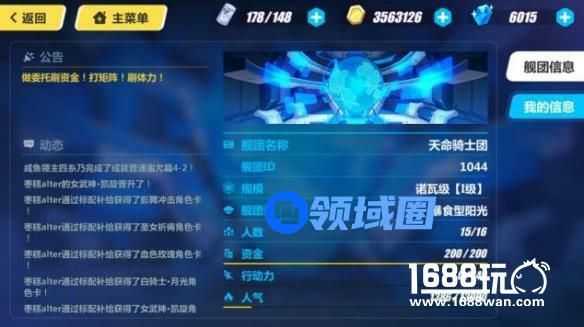 资金:升级设施的必要资源,成员能通过①完成委托,②通关舰团副本,③探索奖励获得。