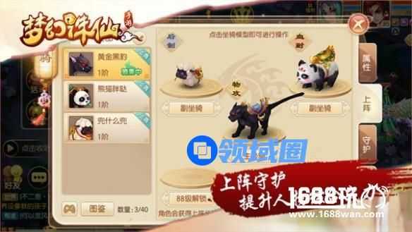 在《梦幻诛仙手游》中,玩家人物角色到达78级后,还可以解锁坐骑上阵守护宠物,并增加宠物附加技能,提升角色的综合战力。在这里必须要说的是,只有被守护的宠物才能有附加技能哟。如果想给坐骑更有个性,还可以通过彩虹石道具给坐骑更换新的颜色。与众不同的坐骑让你更加拉风哦!