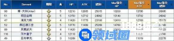 由该列表可以看到,黑狗和金时在ATK方面还是遥遥领先的,海格力斯 弗拉德三世 贝奥武夫的ATK近似为一档,小茨木和吕布为最后一档。