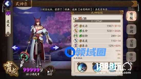 分析:速度是斗技之中的关键,技能等级升满后50%的概率相对而言比较容易触发,20点速度在斗技中的重要性不言而喻,多触发几次的情况下,夜叉的速度可以达到很恐怖的境界,对面输出只能打一轮,而夜叉可以多输出一轮。