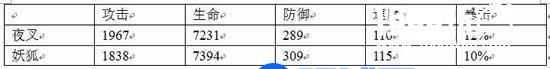 在攻击方面夜叉比妖狐高出了129点,后期相同的御魂夜叉的攻击数值更加客观,生命与防御作为一个输出型式神不会去刻意的叠加,所以初始相差不多的情况下不会因为御魂因素拉开太大,速度妖狐高出五点,单夜叉被动触发的情况下,一下20点的速度就可以把这差距拉回来,暴击夜叉相对高2%的暴击,对于想要满暴击的式神来说,这2%的暴击也很重要,六号位选择暴击的情况下,其他位置要看脸才能凑到满暴击,就像小编的妖狐,最后99%的暴击也是一把辛酸一把泪。