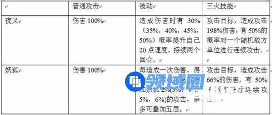 在技能方面普通攻击的伤害都相同,被动就是两者差异的地方,在技能升满的情况下,夜叉50%增加20点速度,可以叠加,妖狐要连续攻击五次才能叠满增加30%的攻击,斗技中,一个输出型式神一开始的目标肯定是地方的脆皮拉条或者输出式神,在血量翻倍的情况下,很难会有一次性秒杀的情况,那么看中的就是谁能更早的获得下一次出手的机会,同样是看几率的情况下,夜叉可以用被动将自己的速度提升的比对面拉条还要快,而妖狐最多只能获得30%的攻击加成,三火技能比较,都是50%的概率进行下一次攻击,而夜叉的伤害比是妖狐的三倍,也就是攻击相同的情况下,夜叉攻击一下,妖狐要突突突三下,在连击概率相同的情况下,伤害的高低也就可以看出来了,但妖狐的优点在于能稳定攻击同一目标,夜叉除了第一下之后是随机也有可能攻击同一目标。