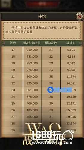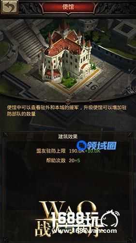 使馆中可以查看驻外和本城的援军,升级使馆可以增加驻防部队的数量和帮助次数。很多玩家觉得使馆的作用不大,不需要升级。但其实使馆可以减少的时间是非常实惠的,尤其是后期建筑的时间增多。