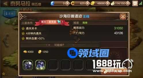 三星通关要求:通关关卡、4分钟内通关、剩余血量>50%