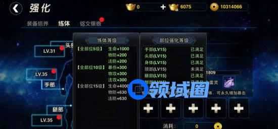 如果同时升到15级感觉很困难,也可以根据人物现有的职业来安排不同部位的升级。以刺为例,可以优先强化颈部,升级暴击属性。