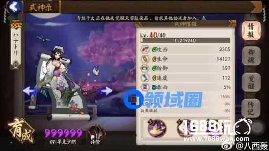 觉醒后面板:我们拿她和一目连相比。生命速度2S,基础生命高于一目连,是目前阴阳师基础血量最高的式神。攻击防御2C,防御略低,与一目连基本持平,暴击1B不说了。技能详解花鸟卷·SSR