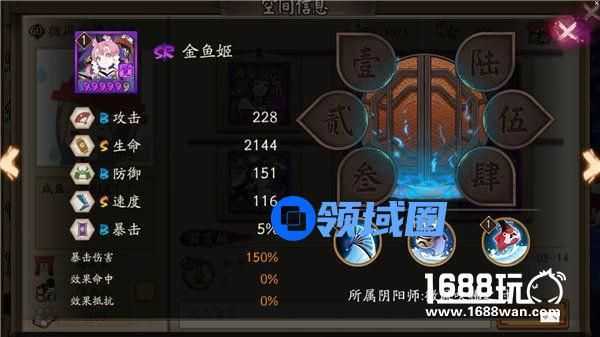 2个S,3个B,典型的SR式神面板,速度较高,出色的生命成长。