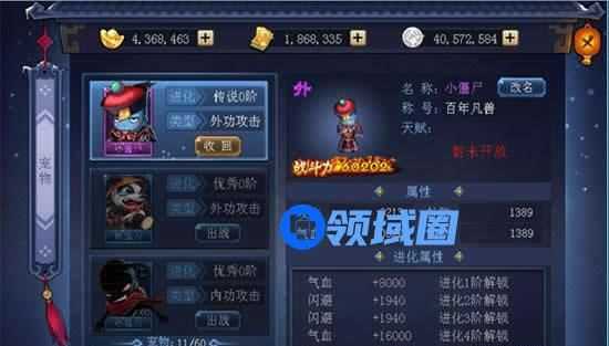 3、进化进度达到100%,则升阶,达到最高阶后可提升宠物品质。
