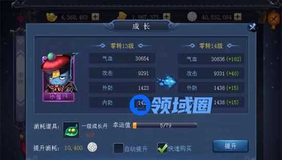 3、提升成长有几率失败,失败不掉级,同时增加幸运值。