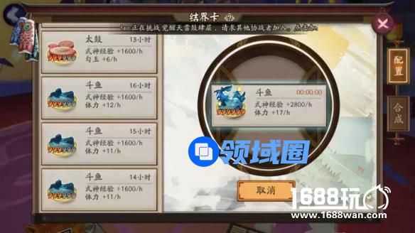 第一,结界卡来源。收益最大的来源就是个人突破,寮突破。我之前是大寮,每次寮开突破,一个半小时内就打光了,自己掐着时间能打七八次,等级低的结界都被抢光,剩下高等级的还打不过,所以结界卡非常少,材料少了,自然合不出什么好的卡来。所以重点来了,如果你想每天斗鱼太鼓不断,请不要加活跃的大寮。加一个人多,但是不太活跃的,你自己可以打很多寮突破,才能保证你的结界卡材料的来源。
