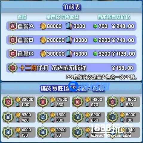 这图上面是价格,下面是你自己把找代打的钱换成宝石,自己去玩,仅仅每次4胜,都会比12胜的奖励丰富2倍多,当然,传奇卡几率肯定没那么高,但是多了多少金币,自己去商城买,有什么问题吗?