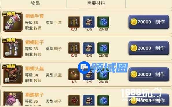 3.达到以上两点第三天也就可以开始打狮蝎普通了,这也是我为啥说最好买素材做狗套衣服、裤子、武器。最晚第五天,你差不多可以做狮蝎套的鞋子和手套。卡等级一般是两天一级,这时候你也有34了。