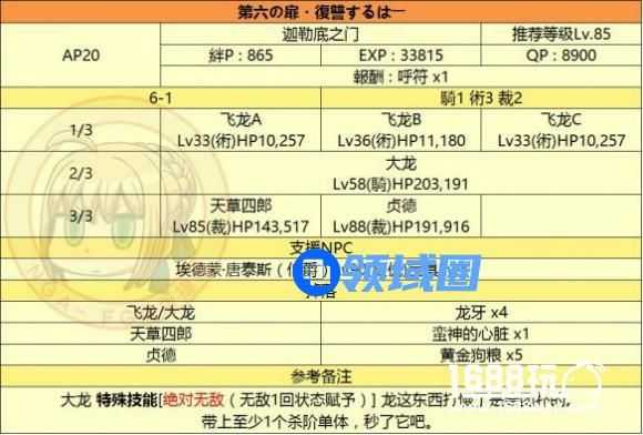 由于大部分关卡支援只能使用系统给的伯爵,所以推荐在敌人为非ruler的场合,把这张卡丢在最后一位,全程使用自己的卡进行攻略。由于伯爵没礼装,又不能克制,先发容易拖后腿,请注意。第一关