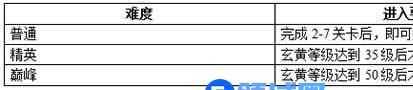 英雄试炼也分为三个难度,难度越高了,掉落的物品越多。每个难度开启的玄黄等级要求也不同,具体玄黄等级要求如下:
