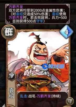 外号袁大嘴,出阵自伤1000别人2000,射死对手回复500,没有任何配合的情况下吃狗,能吃3只狗,所以如果没有配合,大嘴完全是亏费的,但是当大 嘴与华佗仁王配合的时候,那酸爽,想想都觉得蛋疼,这是一个无限吃狗的永动机啊。总的来说,这是一个土豪专用将,0元党换他要慎重哦。