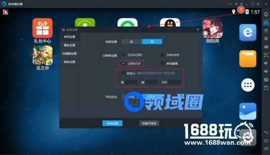 1.调整模拟器分辨率为1280*720。(辅助只支持该分辨率)