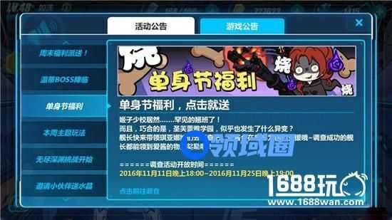 我们需要通过完成“单身节活动”才能获得装备,单身节游戏就是要打败姬子,消除姬子的怨念,可以通过以下方式进入: