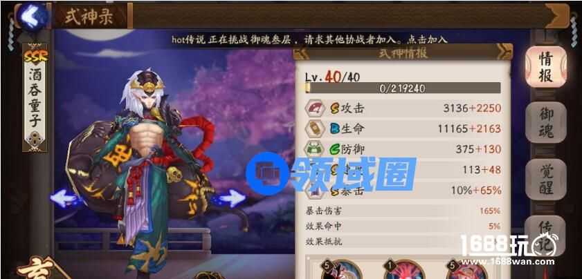斗技:后期御魂起来以后非常厉害,不但有稳定的不耗火伤害,本身硬度也是SSR第一位,基本上没有用攻击御魂会比酒吞更硬的式神了。酒吞的最佳队友们:姑获鸟:前文已经提到了,酒吞是不耗火单点,所以拥有AOE能力的鸟就是弥补酒吞短板的最好选择。同时酒吞因为被动拥有连续普攻,可以大量触发鸟的被动记性普攻追伤。
