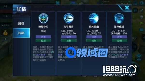 墨子的核心技能,这也就是墨子为什么能打中单的一个很重要的原因,140%的ap加成,再加上回想50%的ap加成,将近200%的加成使得墨子在法强在900以上时可以对对面C位造成毁灭性的伤害。