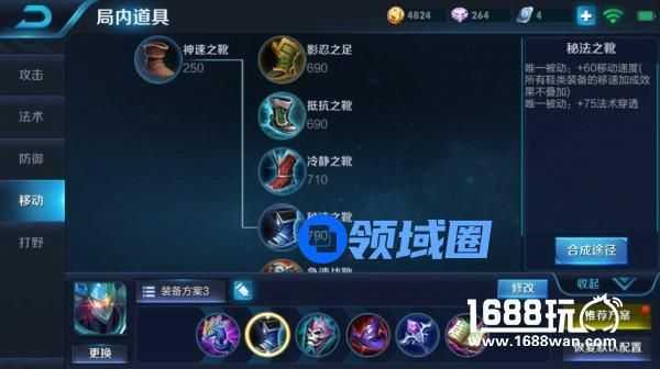 法穿鞋子:增加前期移动速度和法穿,因为我带的铭文法穿比较少,增加一点前期的伤害。