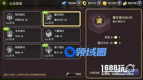 公会技能主要有六个,分别是物攻强化,魔攻强化,生命强化,力量强化,敏捷强化以及智力强化。在初期每个技能都能学习到5级,每次消耗100公会贡献,想要继续学习就需要公会升级该技能。对于工程师而言,推荐的公会技能分别是魔攻强化,生命强化和智力强化。其中魔攻强化和智力强化主要提升工程师的输出能力,而生命强化则能够提升工程师的生存能力。虽然理论上,以上几个公会技能都应该优先升级满级,但是对于公会贡献较低的玩家来说,学习技能就要有个先后顺序了。下面我们就来分析下工程师的公会技能选择路线。