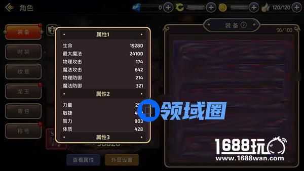 我们通过龙玉来计算一点智力能够获得的收益效果,进而分析魔攻强化和智力强化的选择。首先图一为没有镶嵌一级智慧龙玉的属性值,此时我们的魔法攻击为642,最大魔法24100,魔法防御321,智力803。图二为镶嵌一级智慧龙玉后的属性值,魔法攻击提高到650,最大魔法24400,魔法防御325,智力813。通过两个属性对比我们可以发现,提高10点智力后魔法攻击增加了8点,最大魔法增加300点,魔法防御增加了4点。那么也就是说1点智力可以提高0.8魔法攻击,30最大魔法及0.4魔法防御。