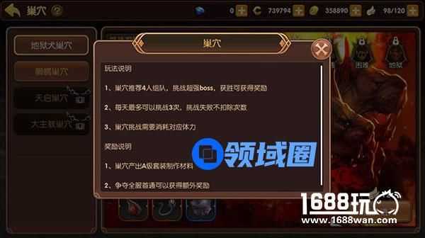 关于巢穴的基本信息就先介绍到这里,小伙伴们抓紧时间去和好基友一起去刷巢穴吧。哪怕前期打不过也没关系,我们可以一次次的再来,毕竟失败是不会扣除次数和体力的嘛。