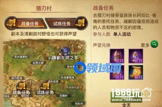 各个地区的声望任务都有自动寻路功能、在游戏中挂机时也能自动完成。