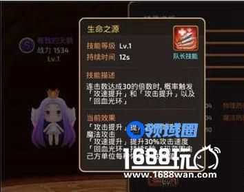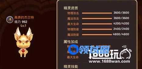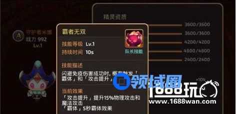 A级精灵,属性上虽然更偏向于魔防,但是队长技能却是非常不错的,攻击命中既有概率触发,提升15%攻击以及范围回血,不管是刷图还是PK都是非常实用的。