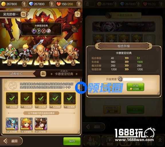 每个组合都要求玩家上阵指定特点的英雄,部分组合还额外要求使用指定天神才可激活。一旦激活组合,旅团将得到指定的特效和可成长的属性。新版本将会给玩家带来更多的组合,所有的组合都将变得可以升级,升级只增加组合的属性值,特效不会成长。组合的升级使得玩家不仅要根据敌人情况和天神、天命、英雄技能情况来组合旅团,还要根据根据组合的规则限定,才能获得更高的收益。这个设定要求玩家对英雄的组合搭配有更多思考,促使他们去研究搭配不同的英雄组合,游戏的策略性进一步提高。