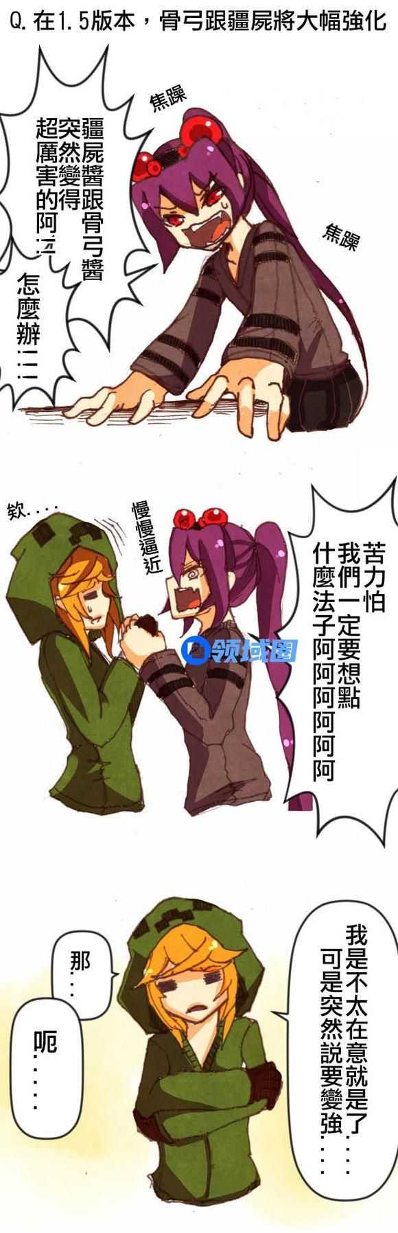 今天带来的是我的世界拟人漫画蜘蛛娘和苦力怕合体了,本篇漫画介绍的是在1.5我的世界版本中骷髅和僵尸得到了加强,蜘蛛感到焦躁于是找苦力怕商量对策。